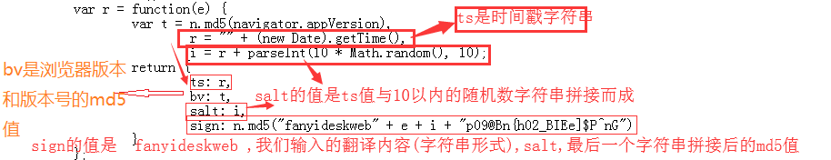 请注意标注的四个参数,如果我们另外输入一个需要翻译的词语,会发现其中i, salt, sign, ts的数据是变化的。第二图与第一图比较就可以发现。我们需要知道变化的三个参数的规律,才能返回我们想要的结果。