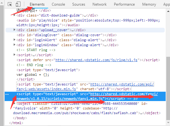 在Elements下面如图可以看到一个fanyi.min.js的json文件,复制他的地址在浏览器中打开,会发现很乱的文本。再复制所有文本到Json在线格式化工具,转化一下就比较清晰了。可以把转化后的文本在记事本中打开,查找salt的文本,就会发现相关的定义。