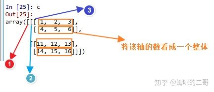 轴0-轴2,他们具体是怎么表现的呢?参见下面的图示,从图中可以看到,NumPy对于轴的编号由外向内,从行到列。
