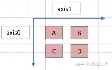 轴2要怎么计算呢?由于我们上面已经将最内层的数组看成了一个整体,如图所示。所以,我们计算轴2,就等同于对数组 A、B、C、D进行分别求和