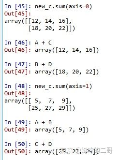 所以在不同轴上进行数据操作会得到不同的值,数组中的值是由沿轴方向上的数据相加所得。