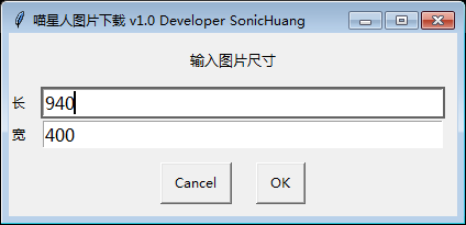 爬取喵星人图片下载网站用easygui提供交互界面输入图片尺寸并下载图片到本地。难度不大,代码如下:
